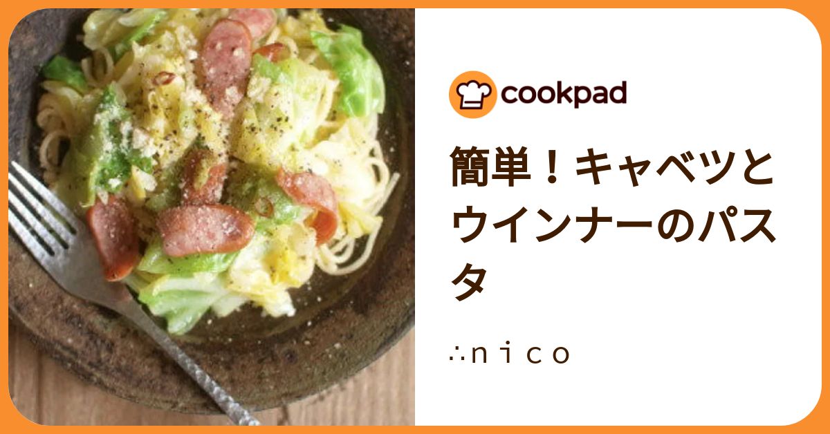 Cookpad:簡単!キャベツとウインナーのパスタhttps://cookpad.com/jp/recipes/18673815