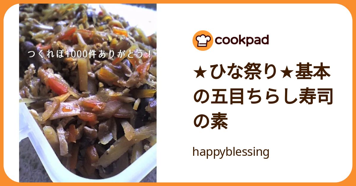 Cookpad:★ひな祭り★基本の五目ちらし寿司の素https://cookpad.com/jp/recipes/17469016