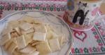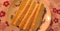 全ての材料をボウルで混ぜ、5~7ミリくらいに伸ばして正方形に切ります。フォークで模様をつけ、1100Wのトースターで15〜20分程度焼きます。(オーブンなら200℃予熱で、15〜20分)